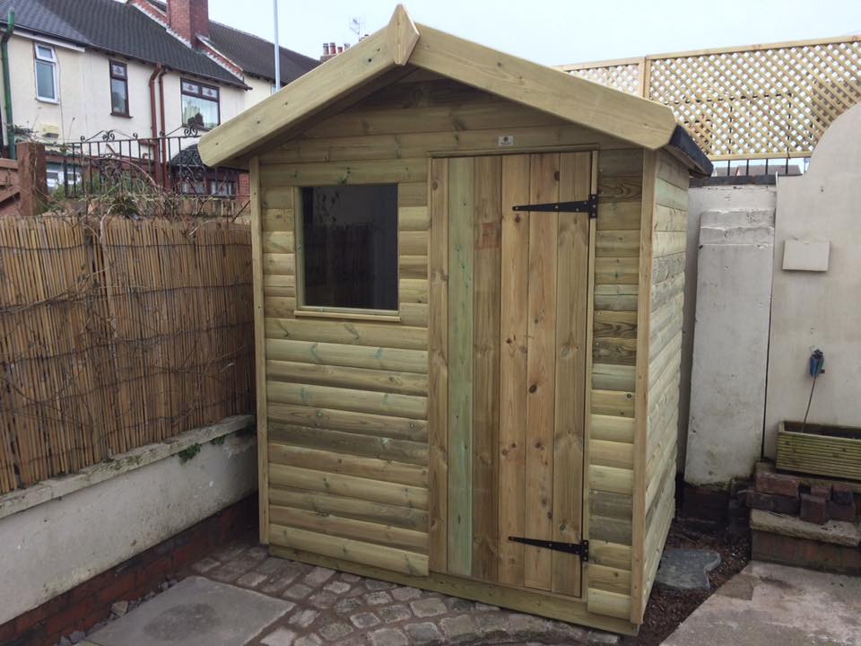 We use only high grade FSC certified, tantalised timber in out products. The frame is constructed from 45 x 45mm timber. With 20mm thick log lap cladding sides, 22mm thick tongue and groove floor boards, 19mm thick tongue and groove clad roves finished with torch on mineral felt.