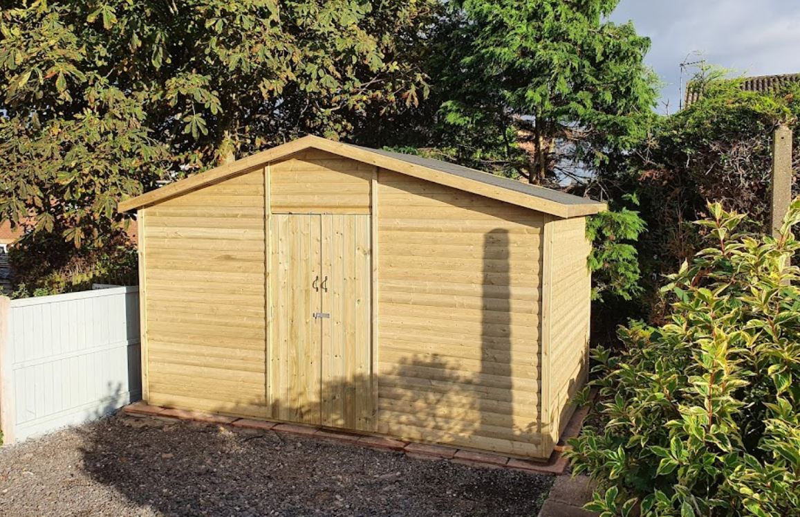 APEX GARDEN LOGLAP SHED WITH DOUBLE DOORS 14ft (Frontage) x 12ft (depth)