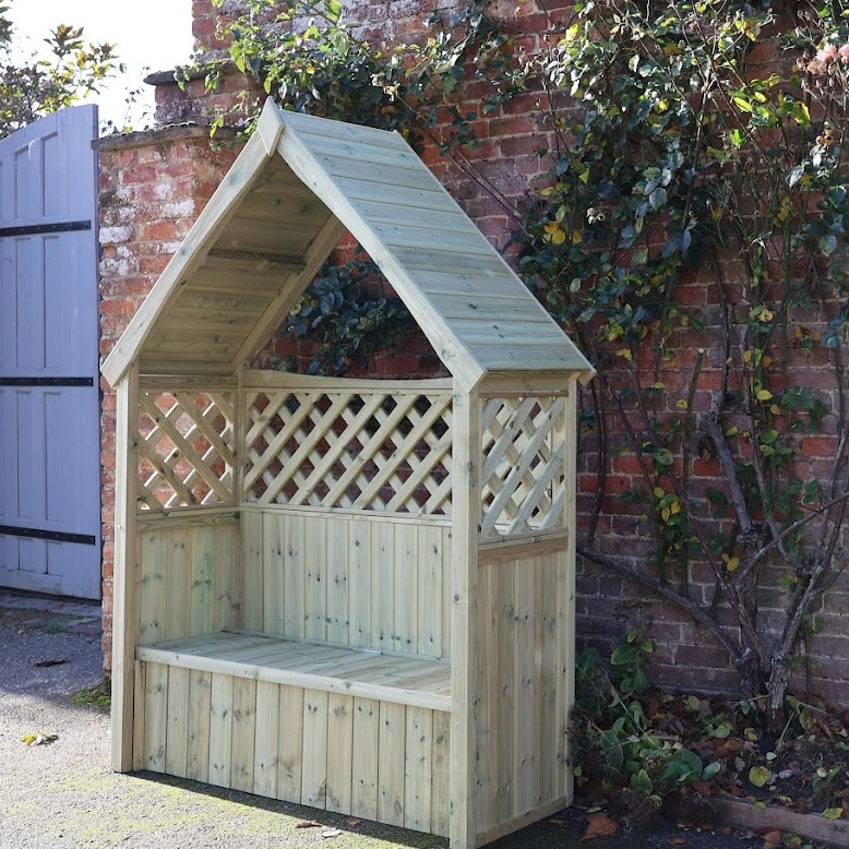 The trellis back and sides are ideal for climbing or trailing plants, helping it blend beautifully into your garden. With its classic pitched roof and curved detailing, it adds charm and character to any outdoor space.