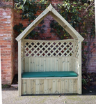 The Daisy Storage Arbour is beautifully handmade and features a handy under-seat storage area — perfect for keeping cushions, blankets, and garden accessories neatly tucked away.