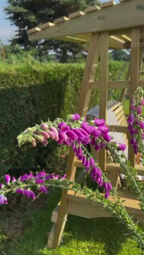It is made from the finest timber with a lovely smooth finish and attractive grain. It is fixed entirely with screws and is designed for stability and it also benefits from the use of heavy galvanised chains that won’t rust, and the 5th grade Redwood timber is pressure treated to Hazard Class 4 (HC4) making it rot free for as long as 20 years.