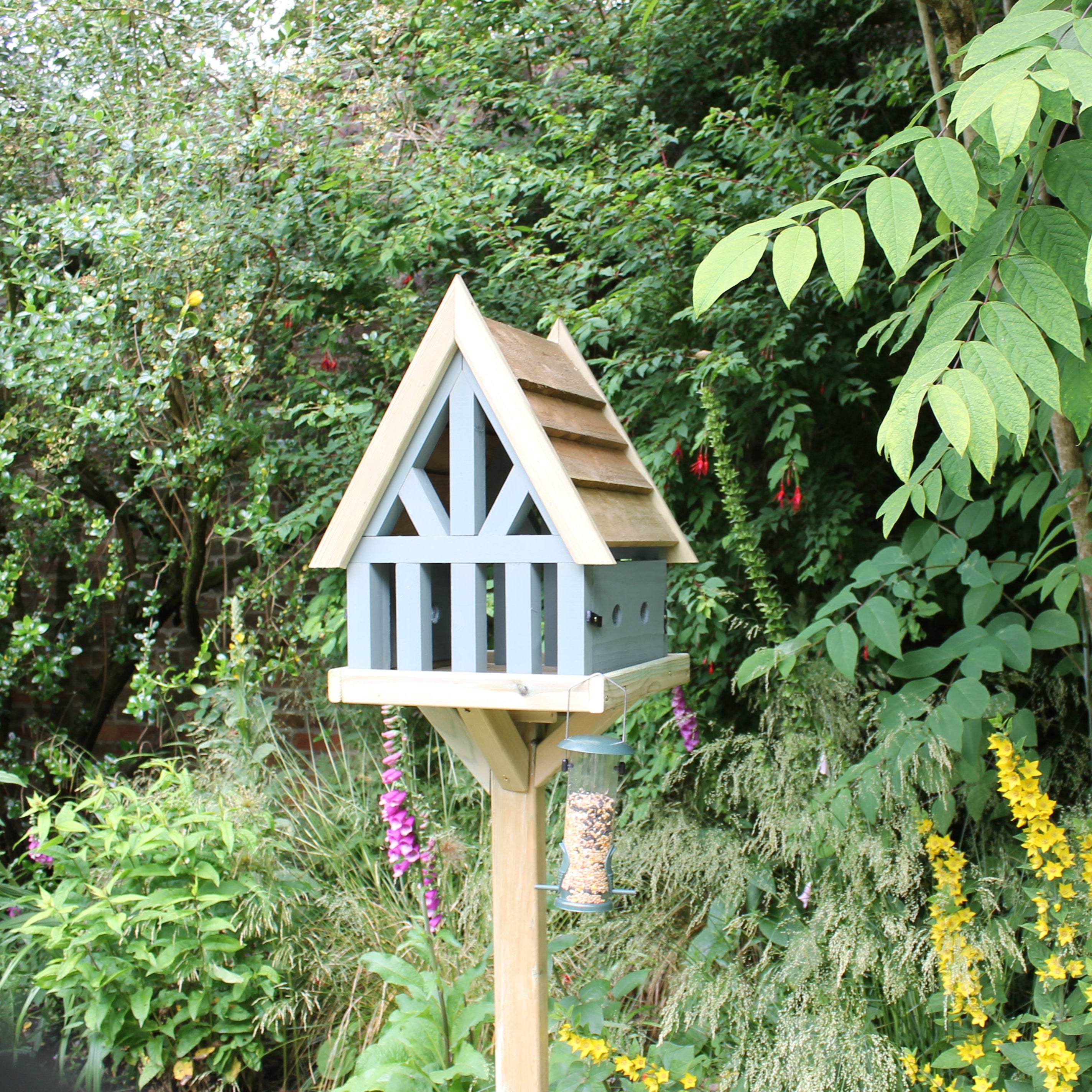 The Pigeon Proof Bird Table is an elegant wooden birdhouse, designed to attract a variety of birds while adding a charming touch to your outdoor space. Featuring a pitched roof with hand-painted decorative accents and a sturdy base, this handmade birdhouse is both stylish and practical. Built from heavy duty wood it has been made for long-lasting use. Perfect for bird enthusiasts or anyone looking to bring a lively, natural feel to their garden. The table is thoughtfully designed to be both pigeon-proof and to help deter squirrels, creating a safe and welcoming spot for smaller garden birds. Made from premium, pressure treated FSC® certified timber to resist rot for up to 20 years with proper care.