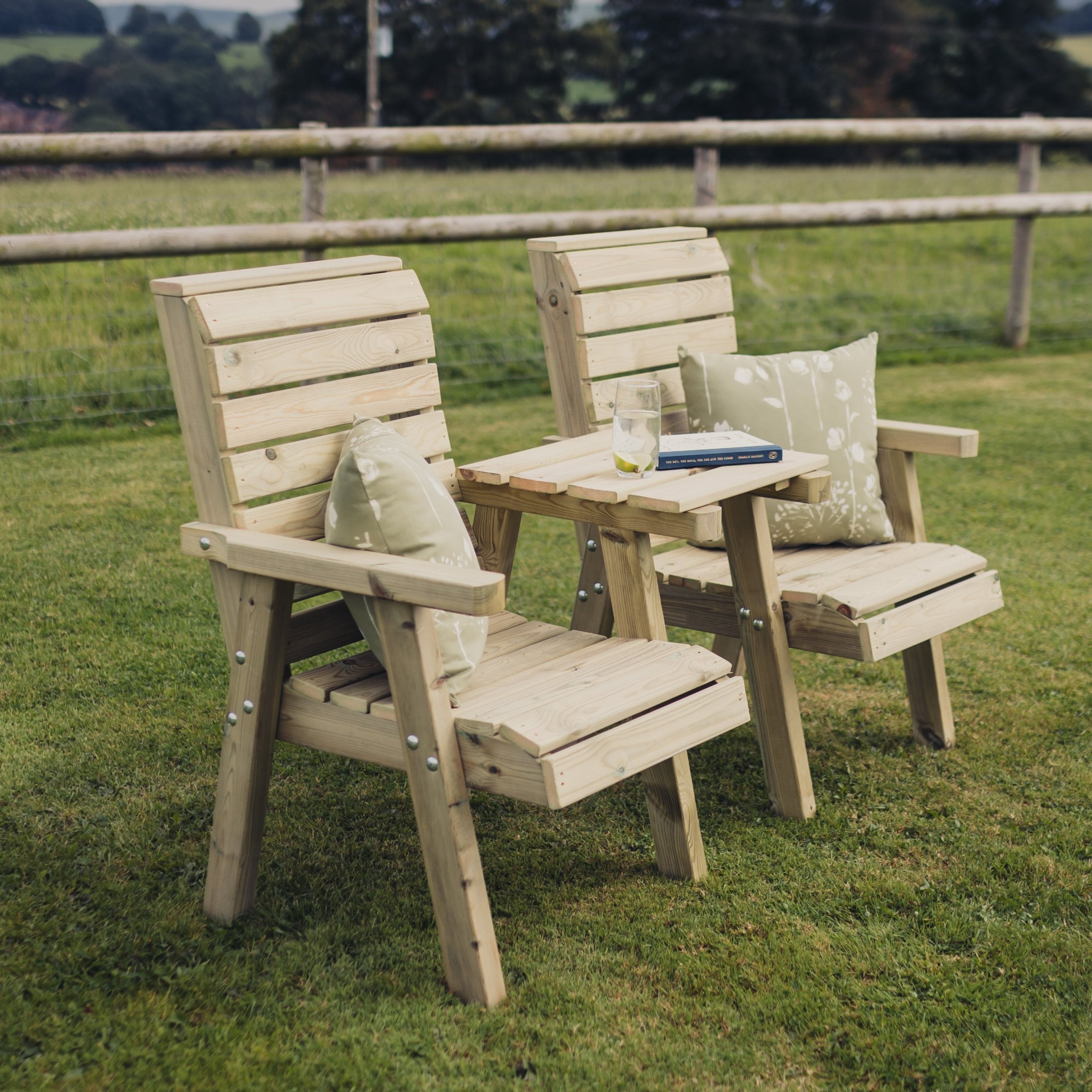 This garden love seat companion set, along with the rest of our handsome furniture range is designed with a traditional, classic look, and is made to be used in harmony with all the other pieces in the range. Giving you endless possibilities to dress your gardens to suit your own taste and make the best use of your outdoor space.