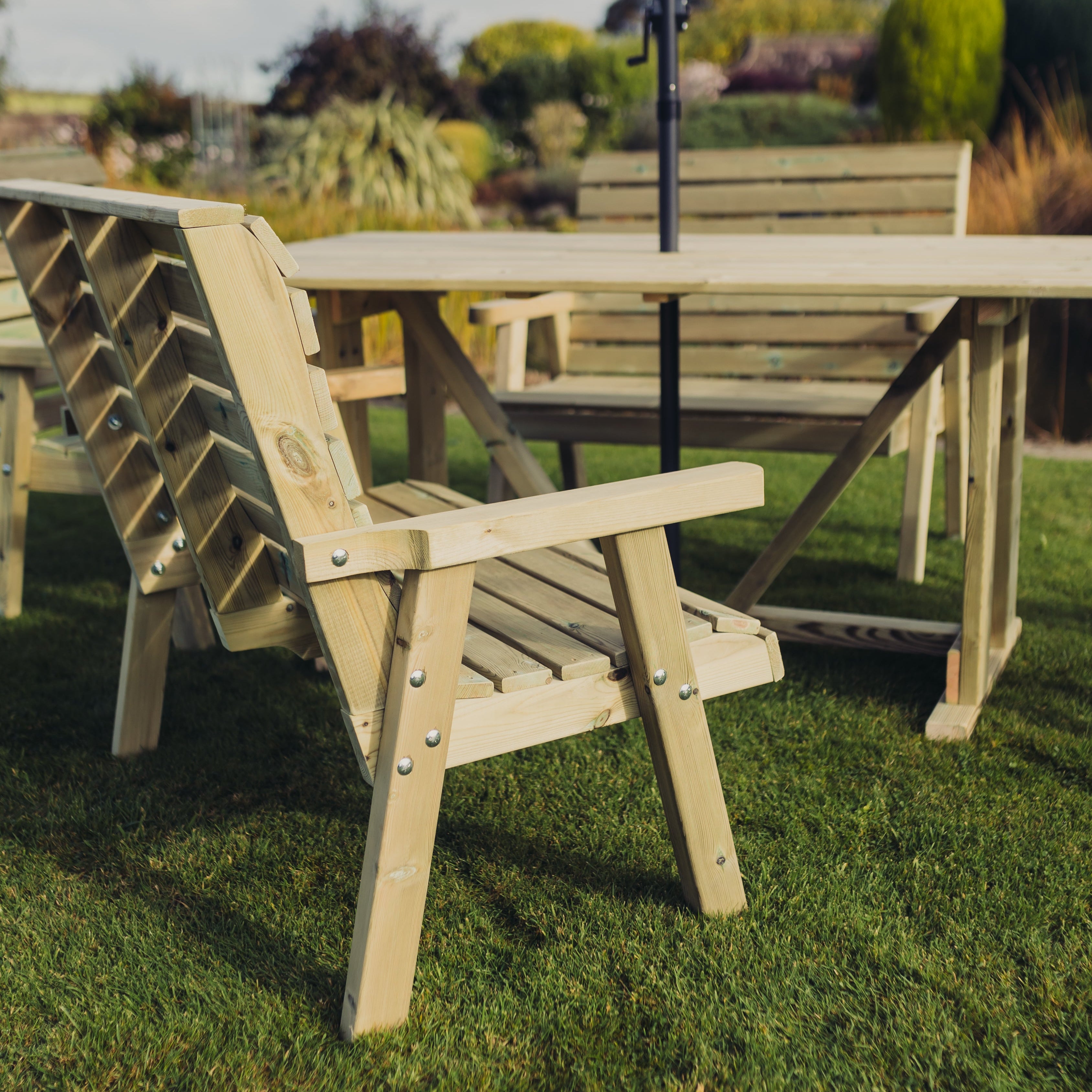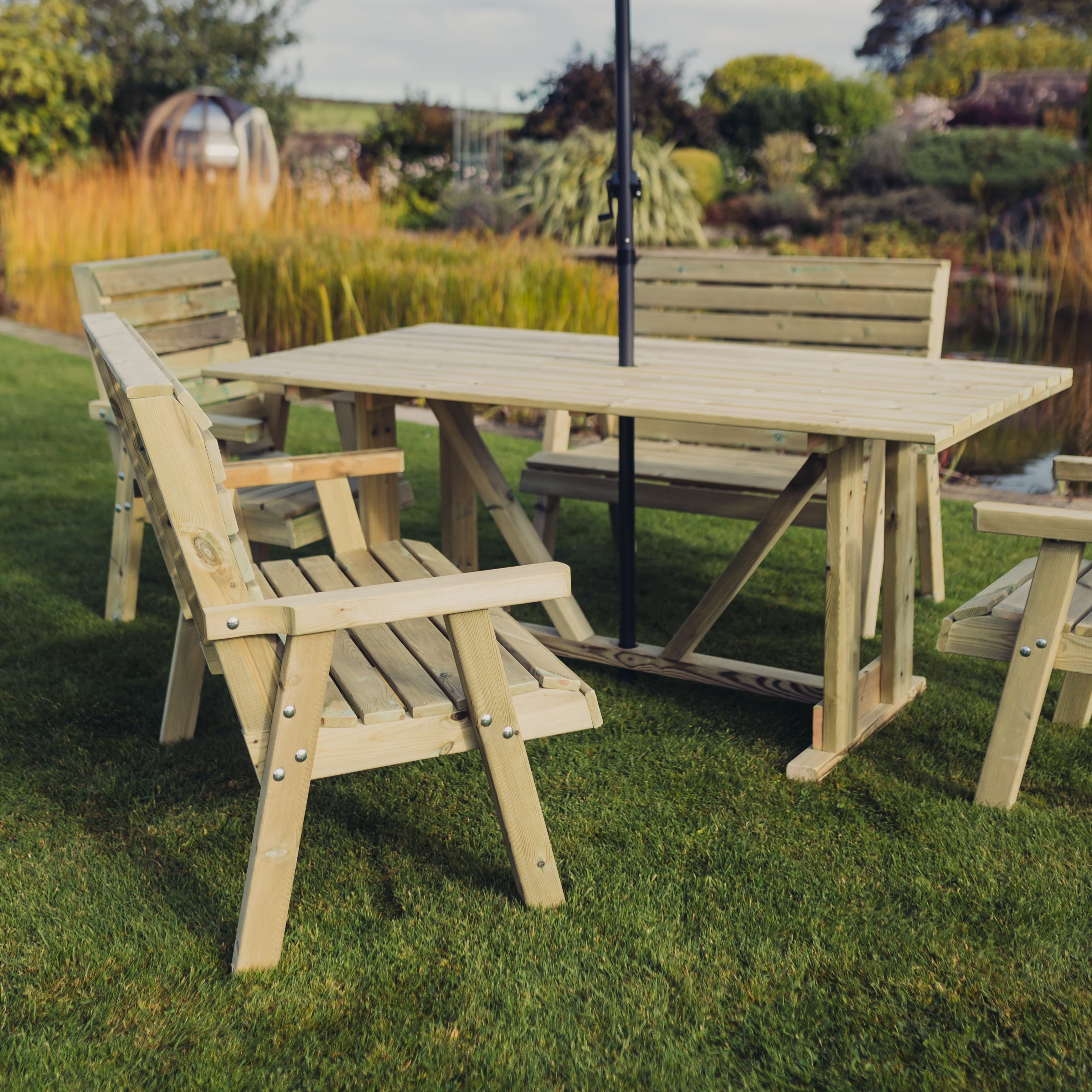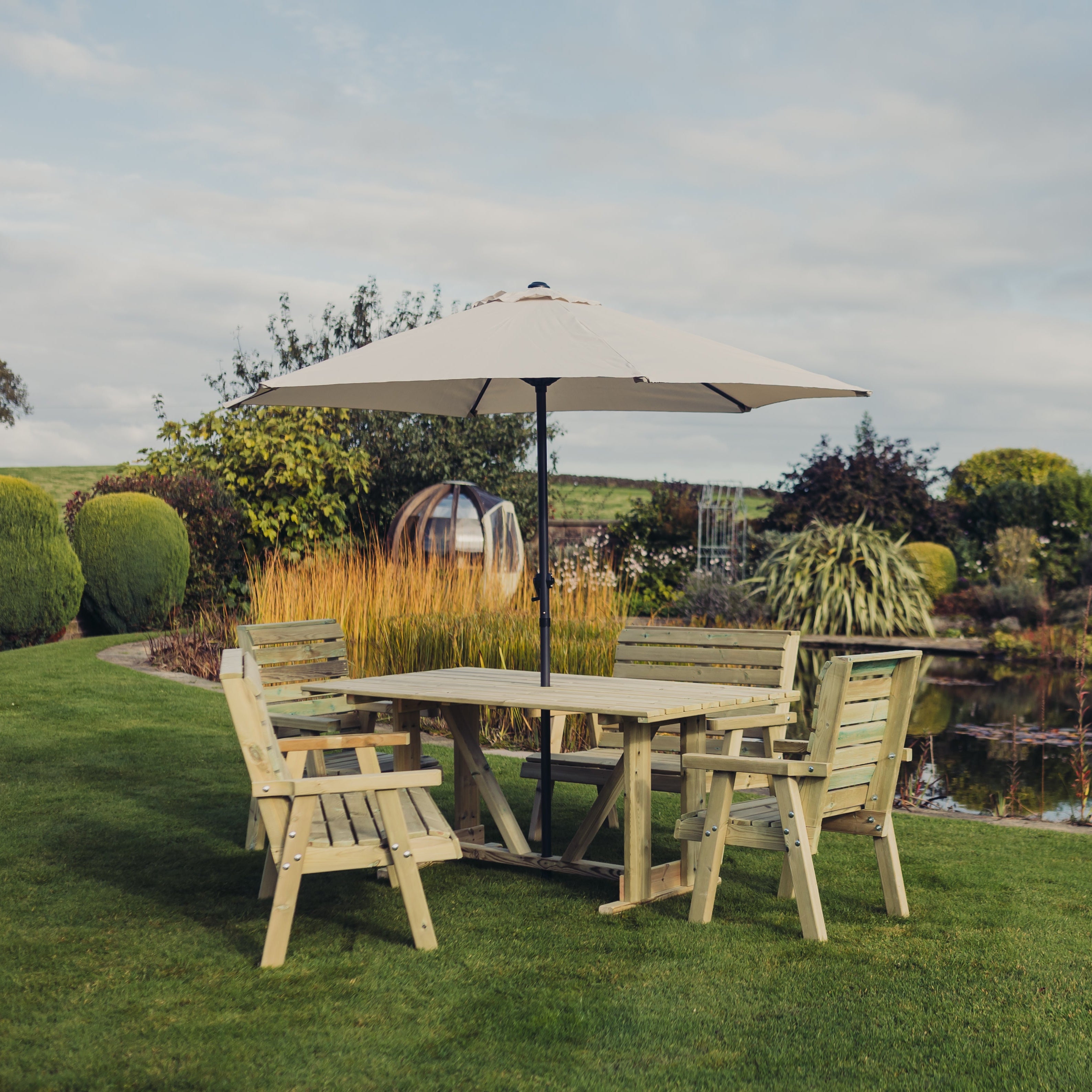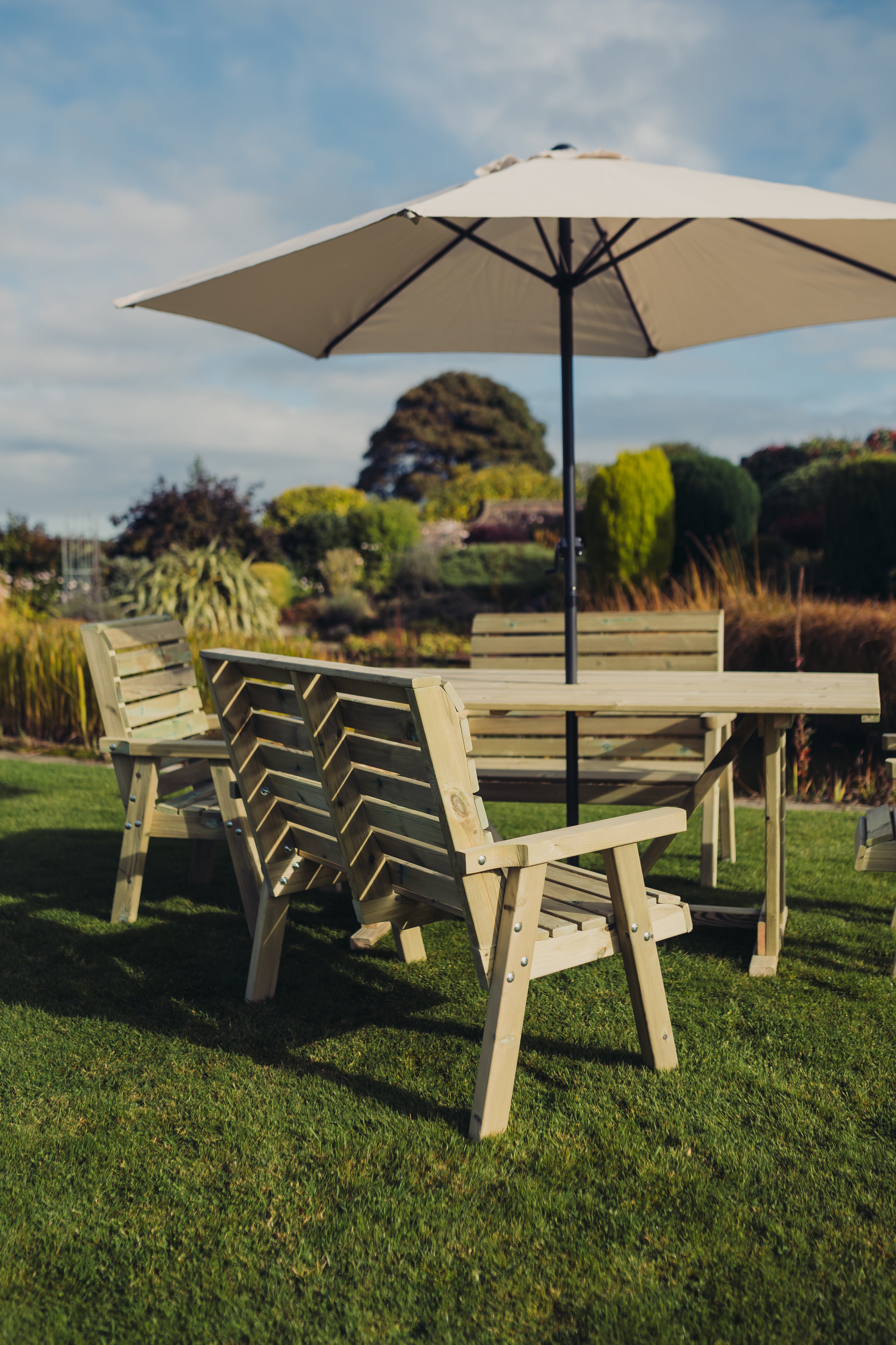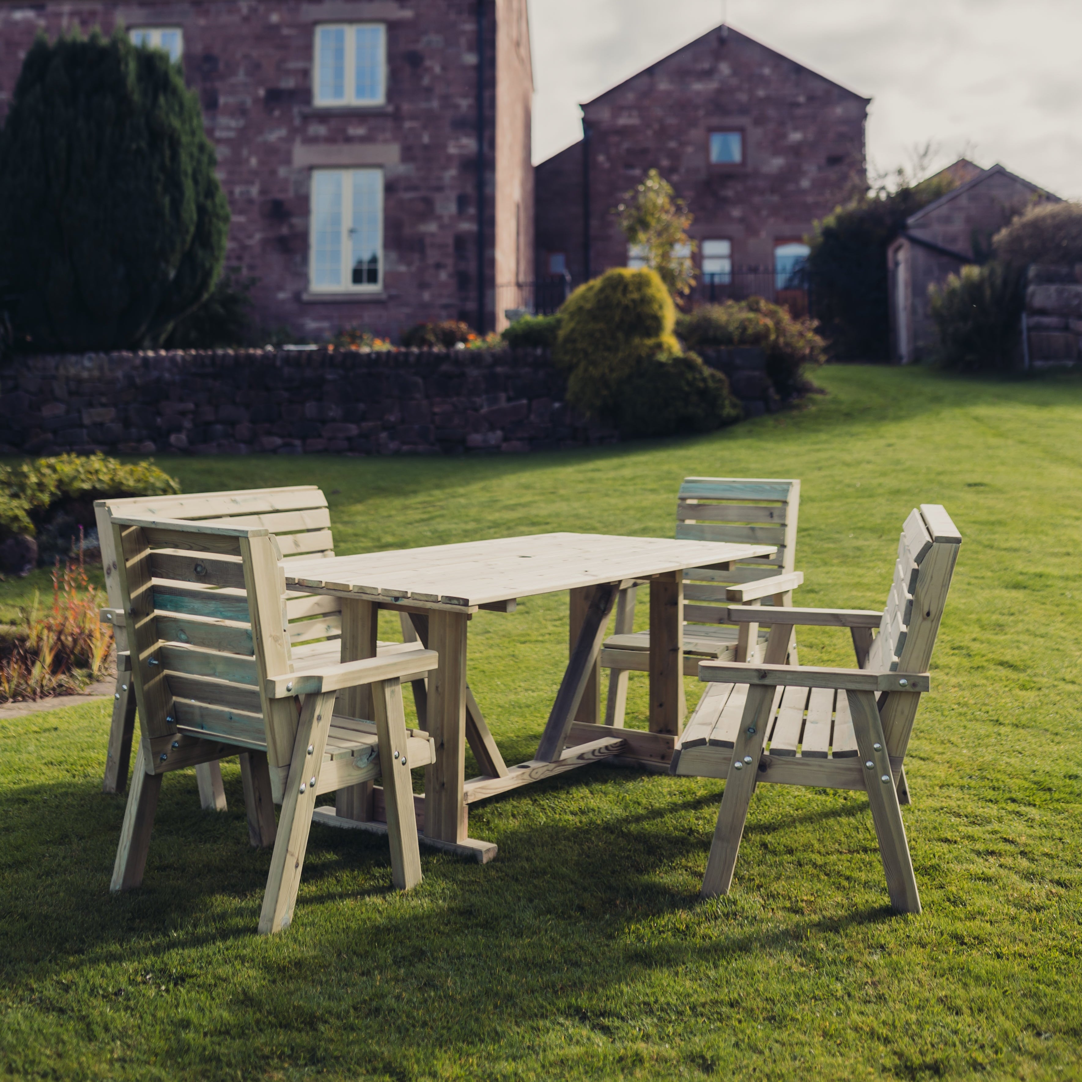 The Clover Table Set will transform your garden into a stylish space for entertaining friends and family, with its durable design and natural finish. Designed with both comfort and longevity in mind, the set has been handmade in the UK and includes a spacious table, two matching chairs, and two sturdy two-seater benches. This set is perfect for those who value quality and functionality, whilst also adding a touch of natural charm to their garden. Made from premium, pressure treated FSC® certified timber to resist rot for up to 20 years with proper care.