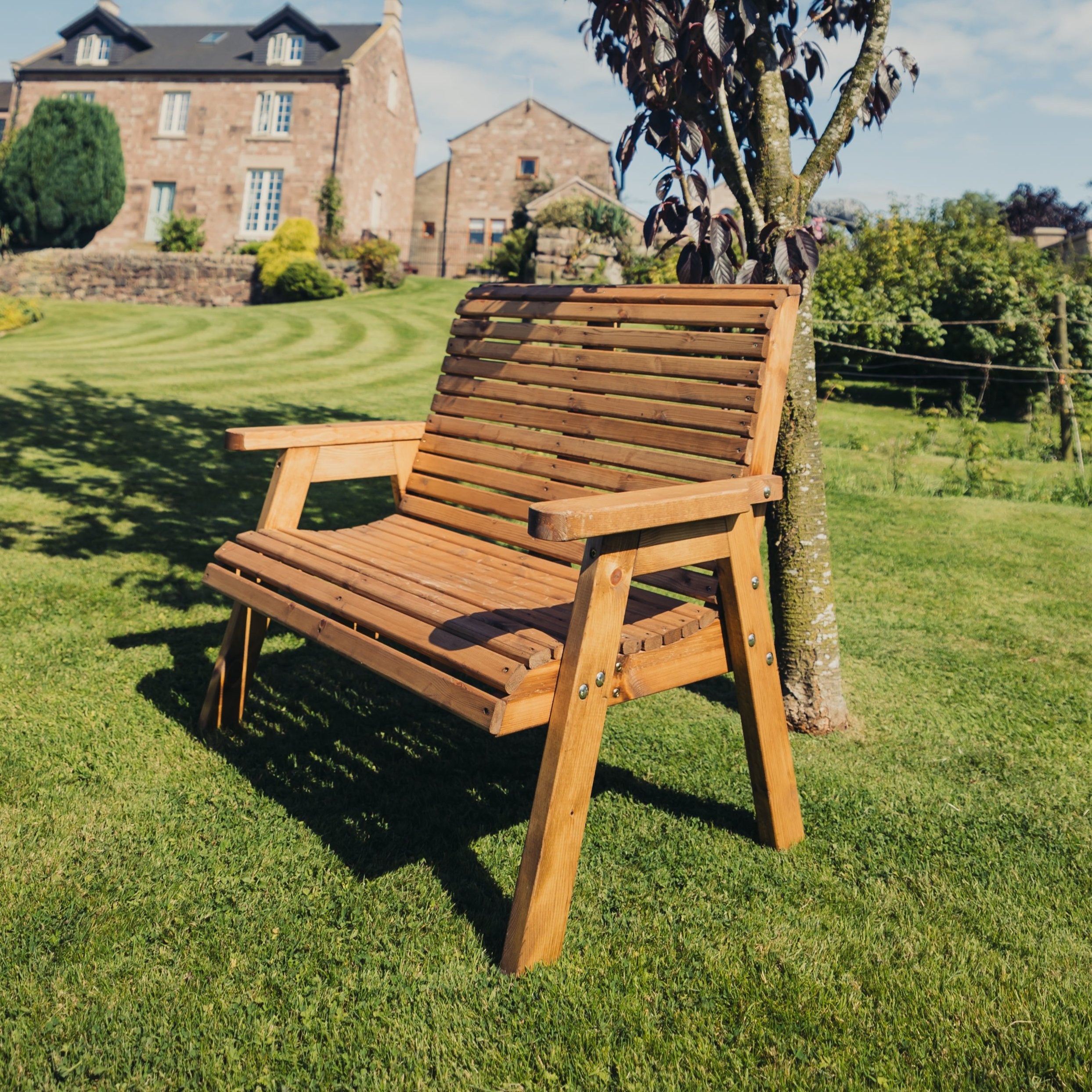 This is a lovely valley styled brown garden bench, made to sit two people. This beautiful bench has been built by British craftsmen in this unique style using the finest Swedish Redwood. Timber has been pre-treated with a basecoat offering antifungal, mould and also UV protection.