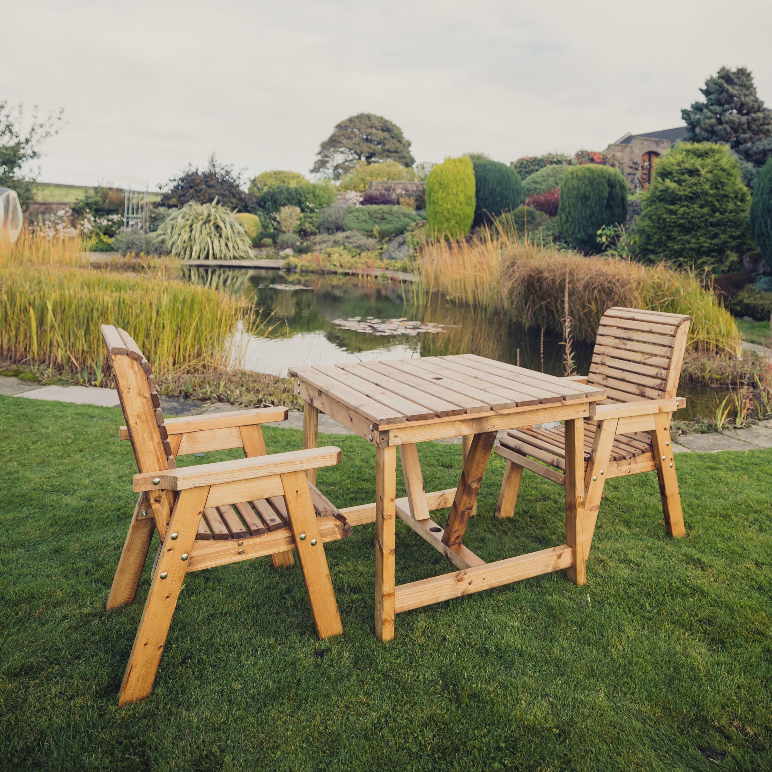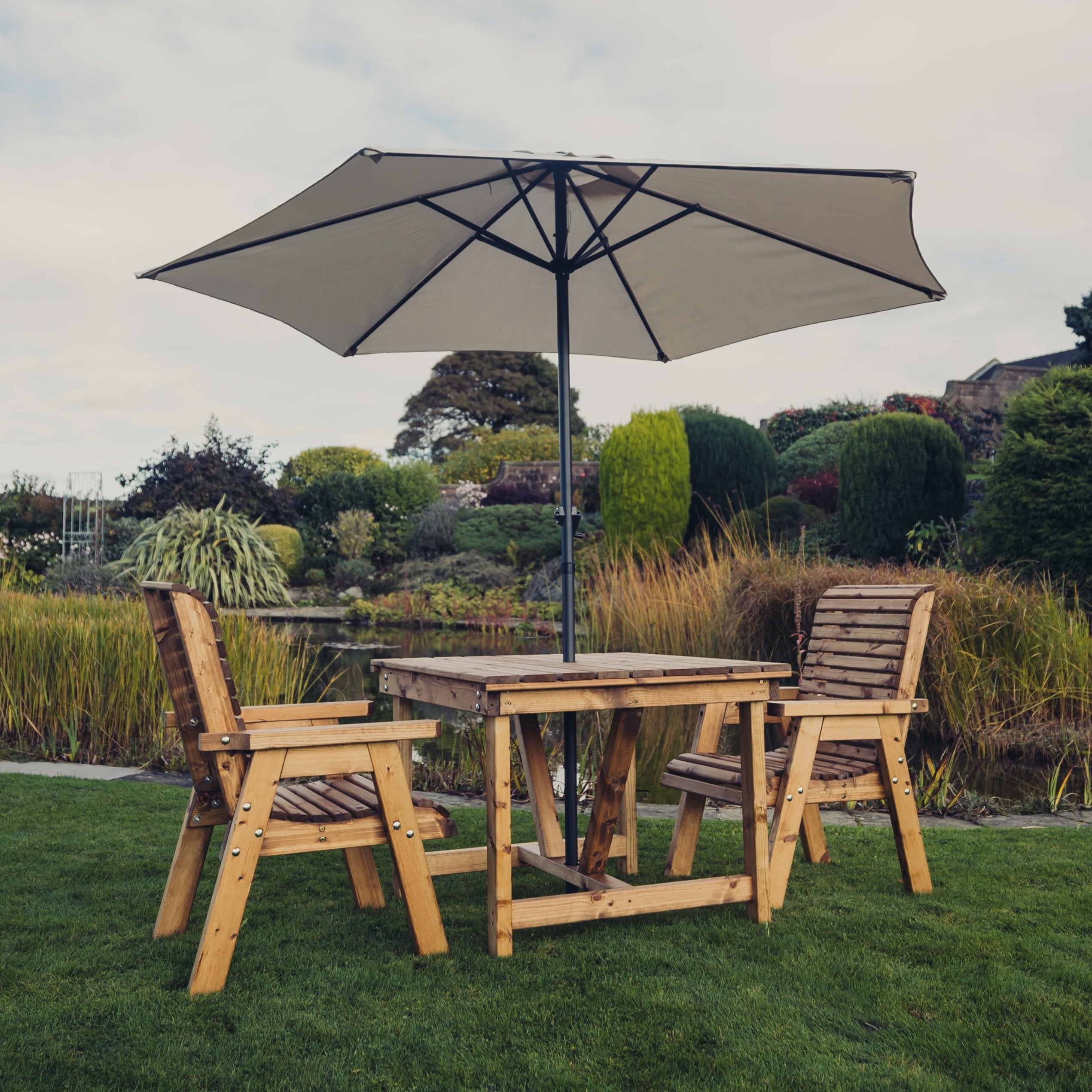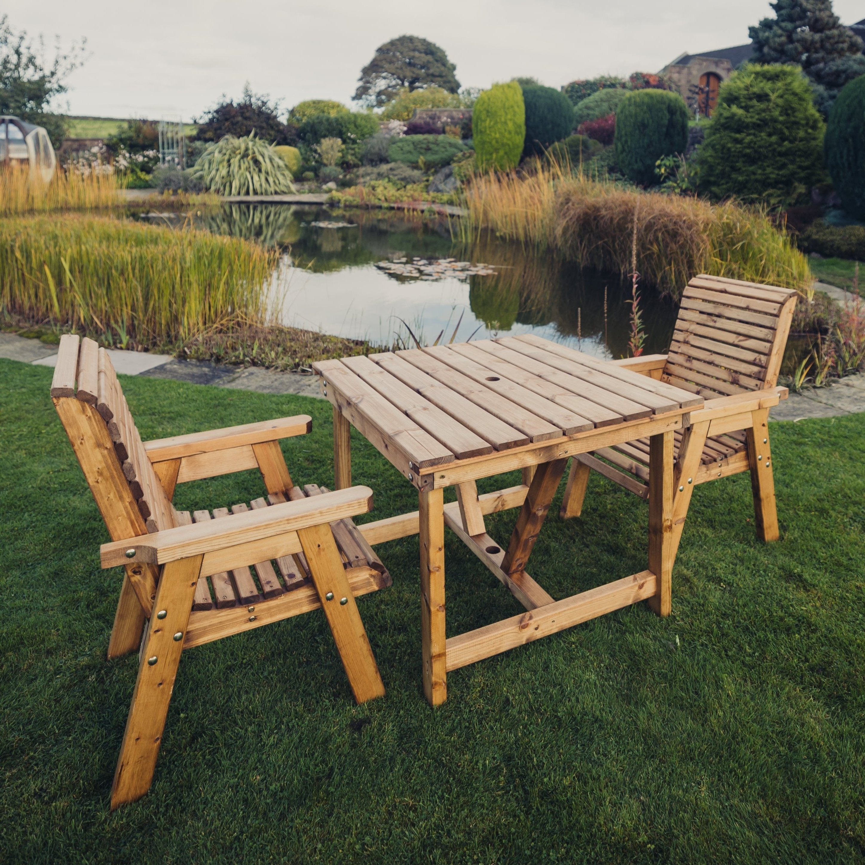 Wooden high quality brown bistro set handmade in North Staffordshire. Get the best British made garden products from Churnet Valley Garden Furniture where we make quality wooden garden products using the finest Scandinavian Redwood which is pre-treated.