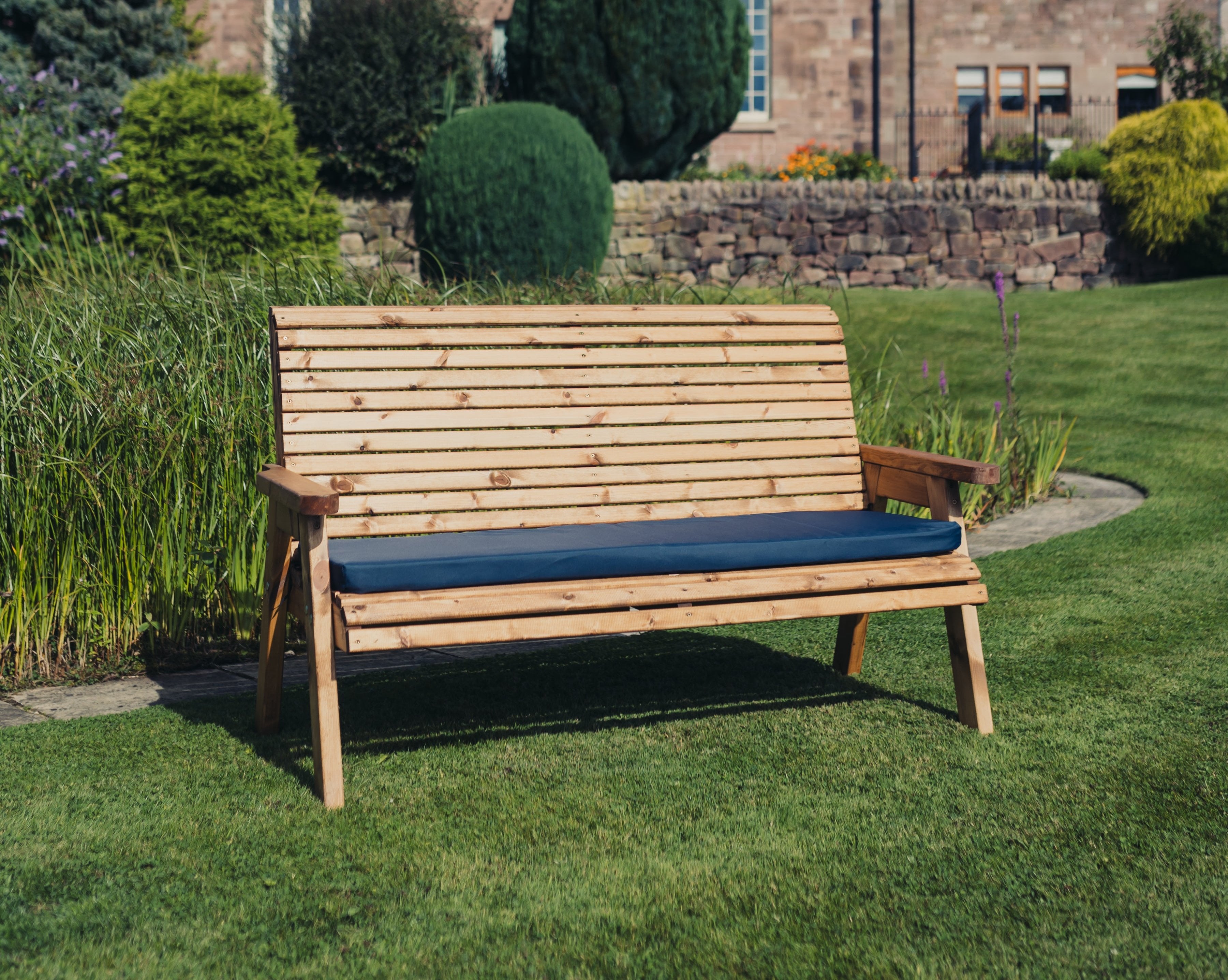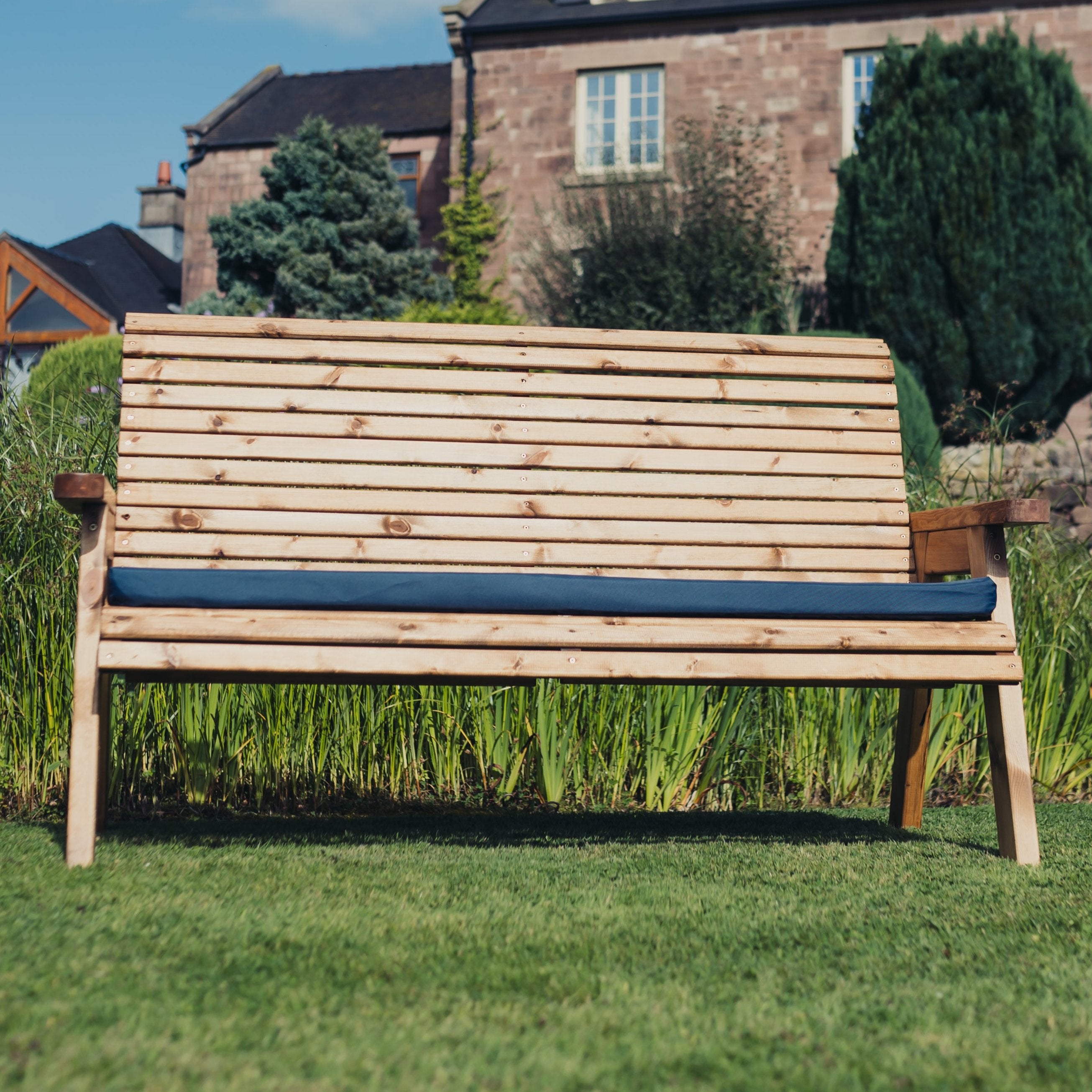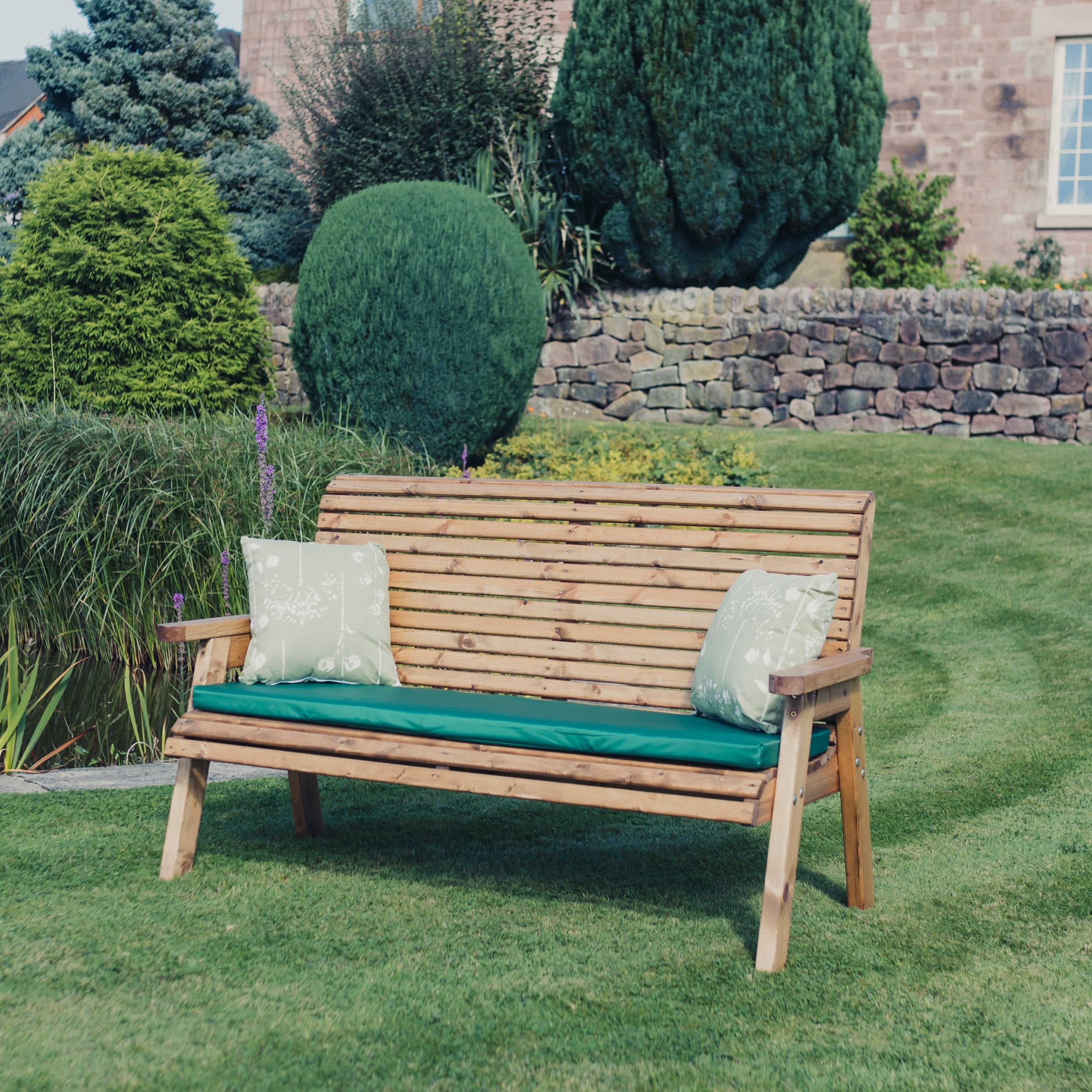 This is a lovely valley styled brown garden bench, made to sit three people. This beautiful bench has been built by British craftsmen in this unique style using the finest Swedish Redwood. Timber has been pre-treated with a basecoat offering antifungal, mould and also UV protection.