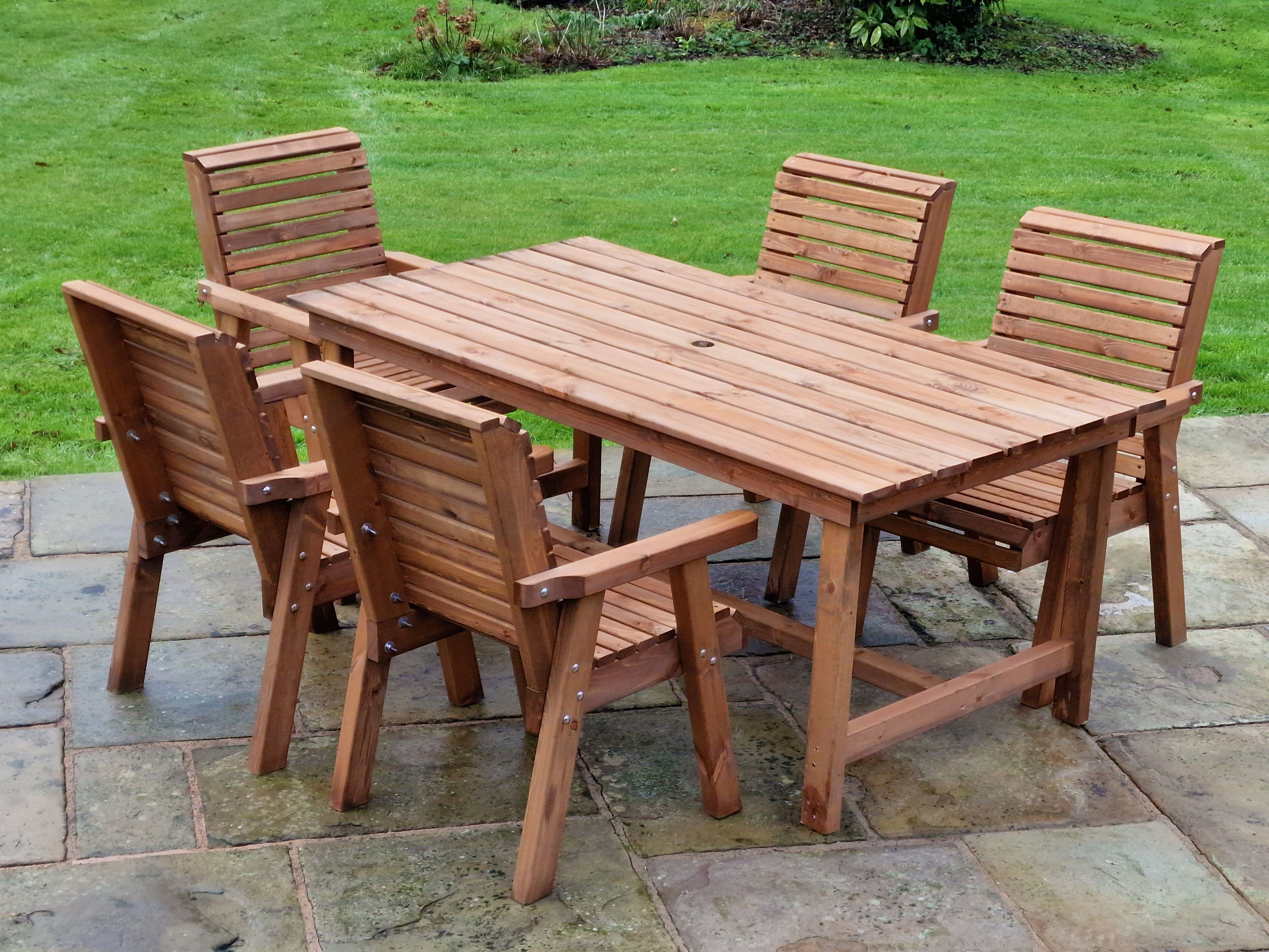 Wooden high quality brown table set handmade in North Staffordshire. Get the best British made garden products from Churnet Valley Garden Furniture where we make quality wooden garden products using the finest Scandinavian Redwood which is pre-treated.