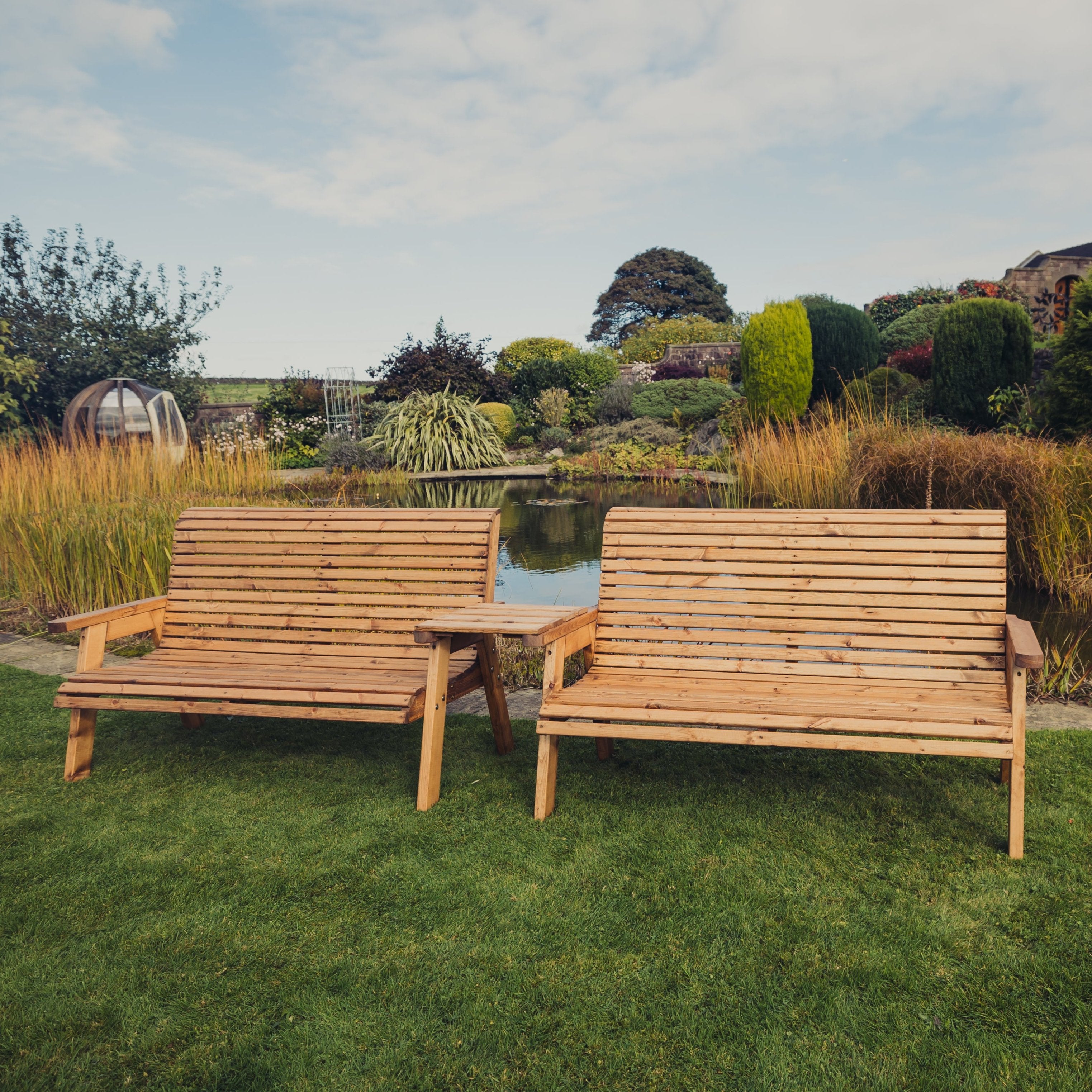 This is a lovely valley styled 6 seat set straight, made to sit six people with 2 x 3 seater benches. This beautiful brown bench set has been built by British craftsmen in this unique style using the finest Swedish Redwood. Timber has been pre-treated with a basecoat offering antifungal, mould and also UV protection.