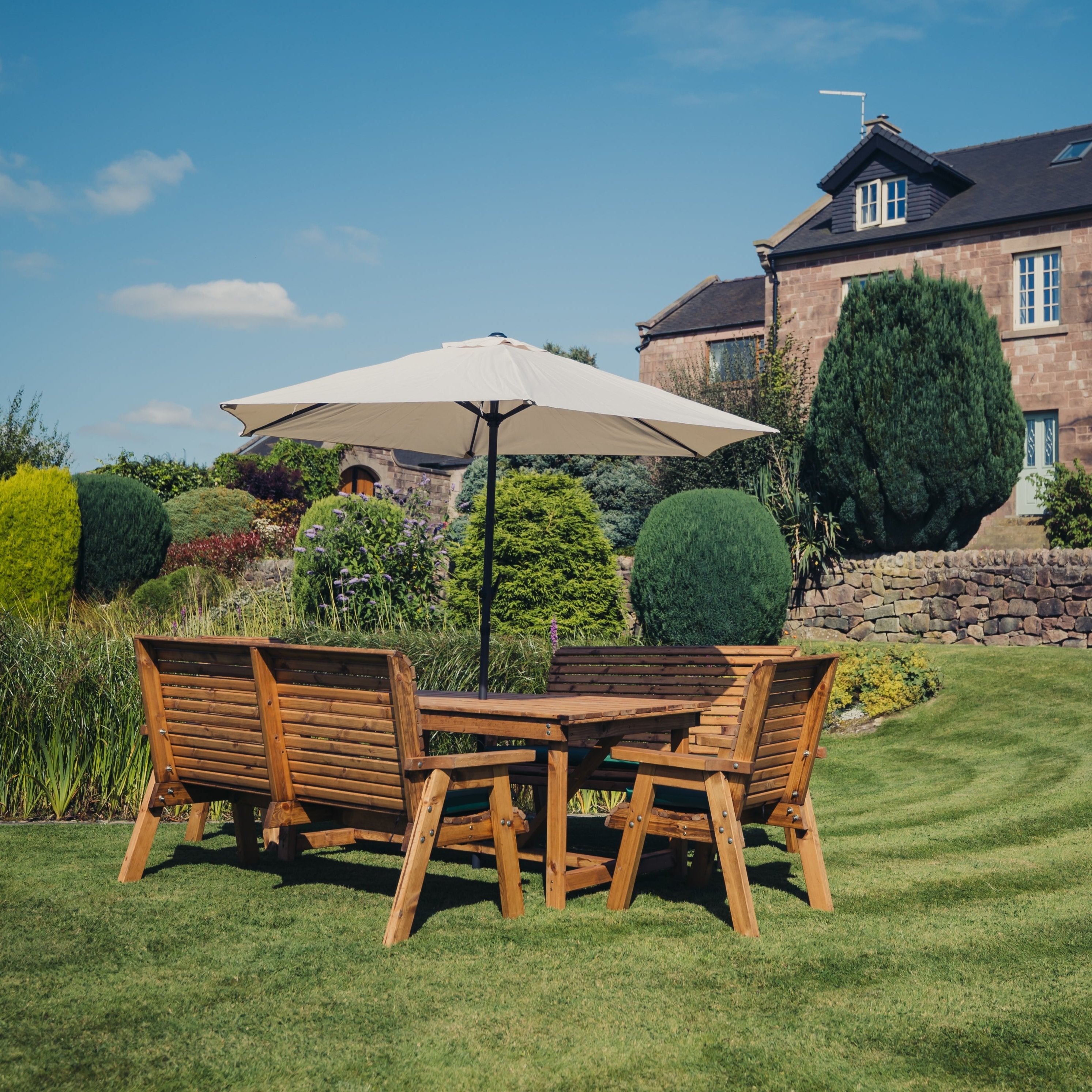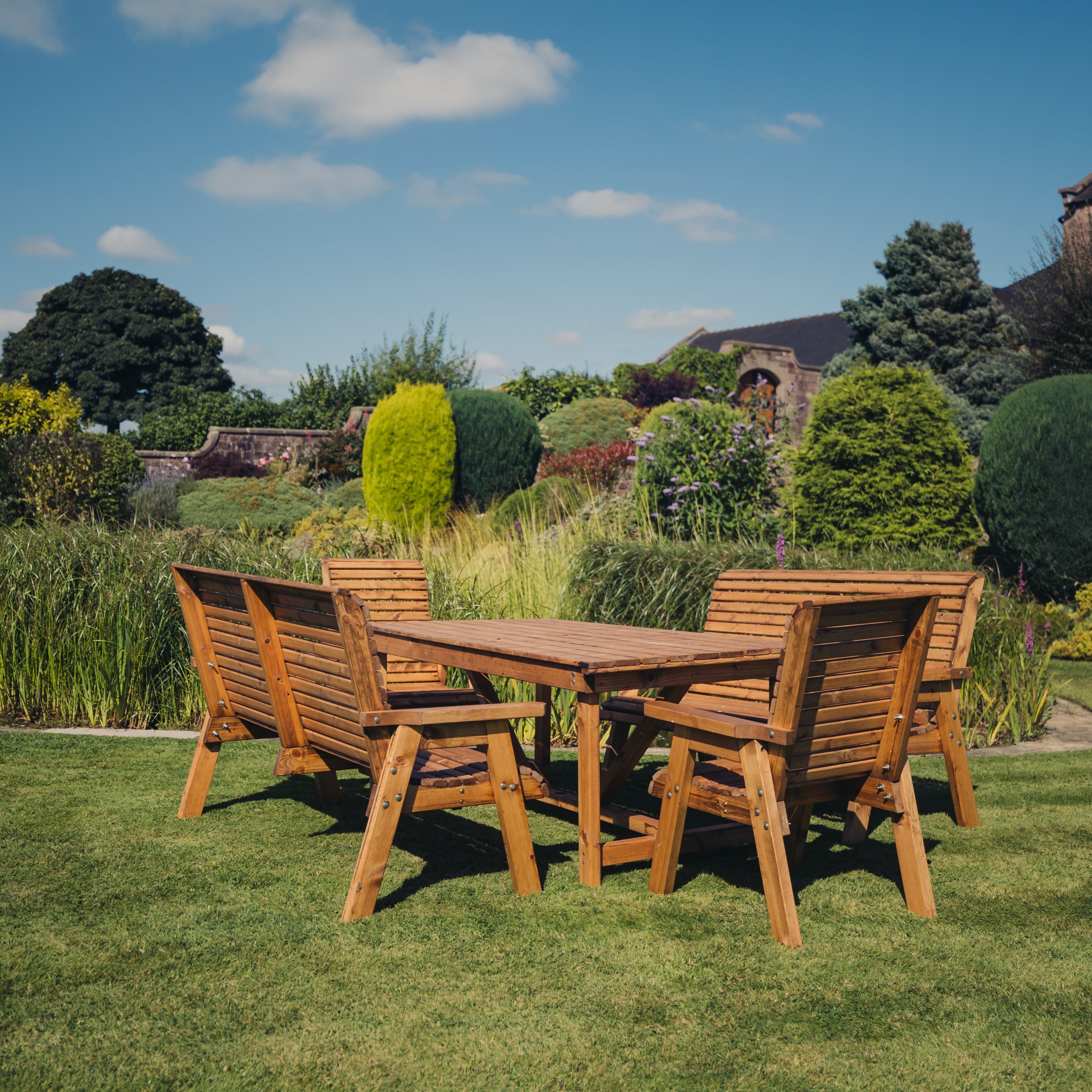 Wooden high quality brown table set handmade in North Staffordshire. Get the best British made garden products from Churnet Valley Garden Furniture where we make quality wooden garden products using the finest Scandinavian Redwood which is pre-treated.
