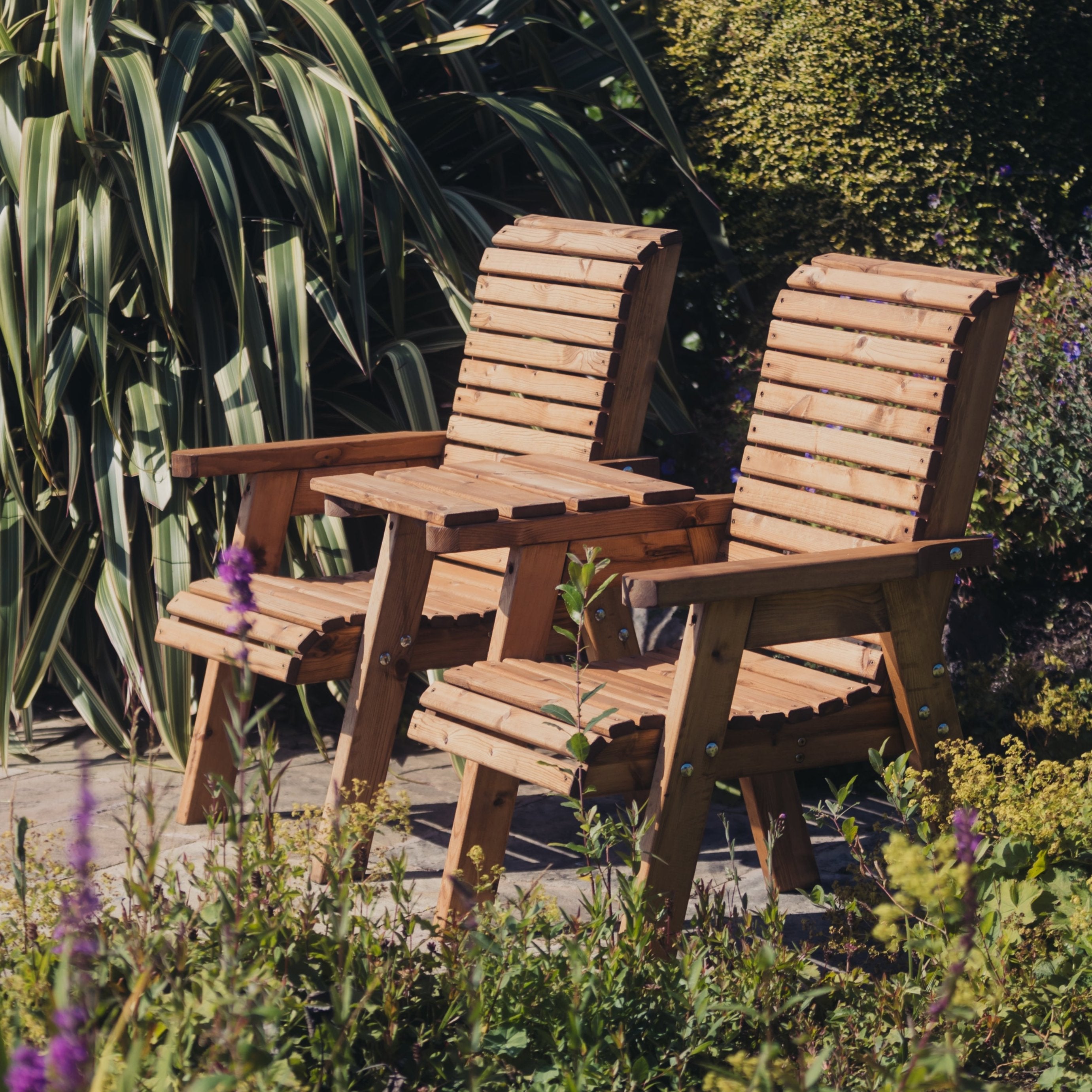 This is a lovely valley styled love seat, made to sit two people. These beautiful brown love seats has been built by British craftsmen in this unique style using the finest Swedish Redwood. Timber has been pre-treated with a basecoat offering antifungal, mould and also UV protection.