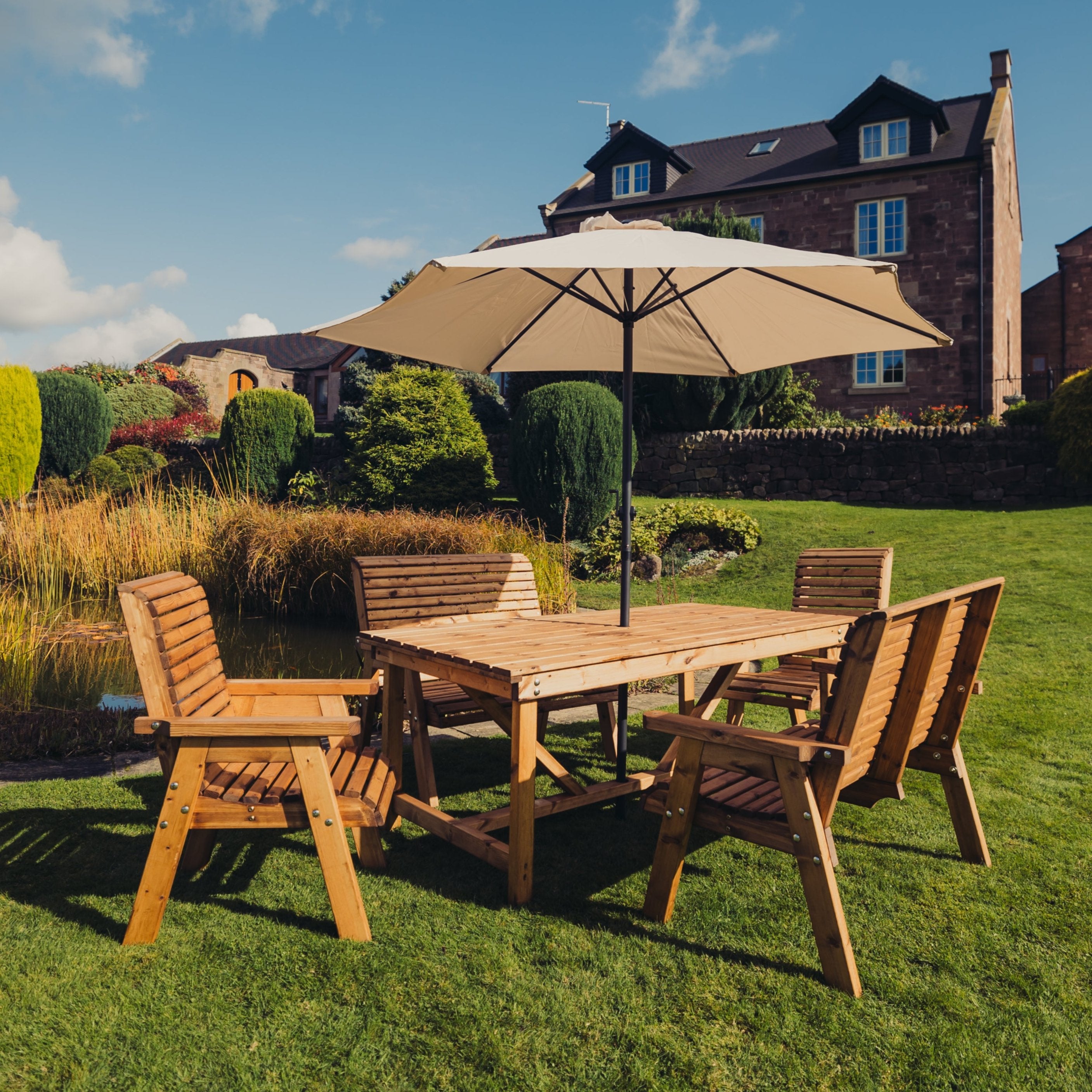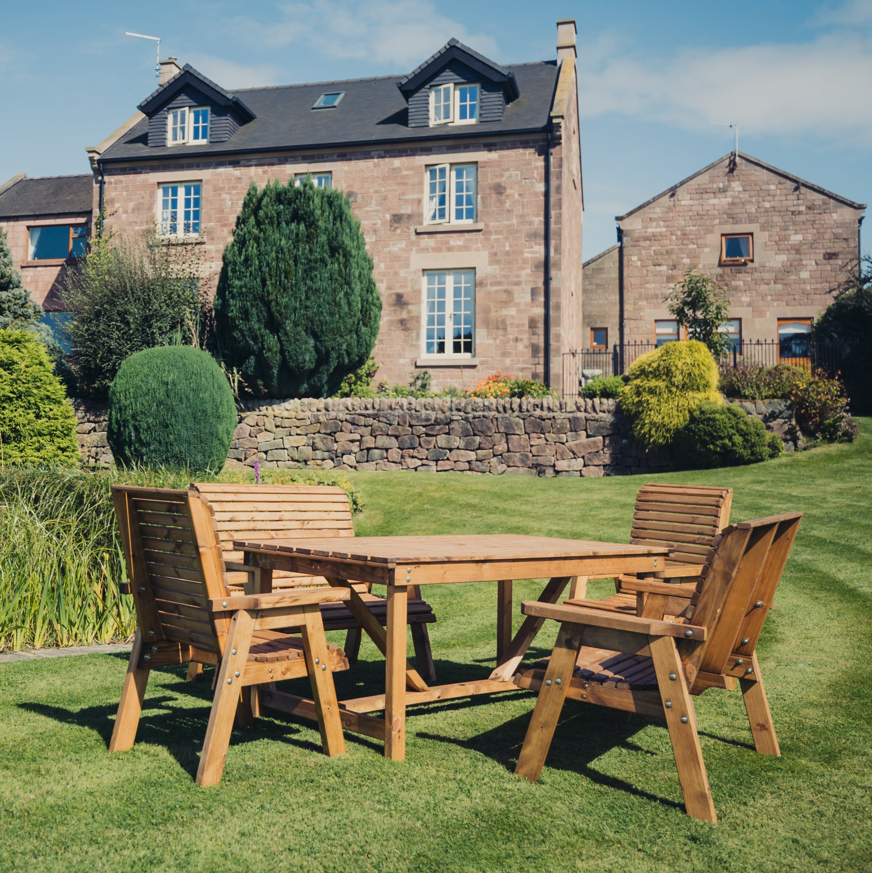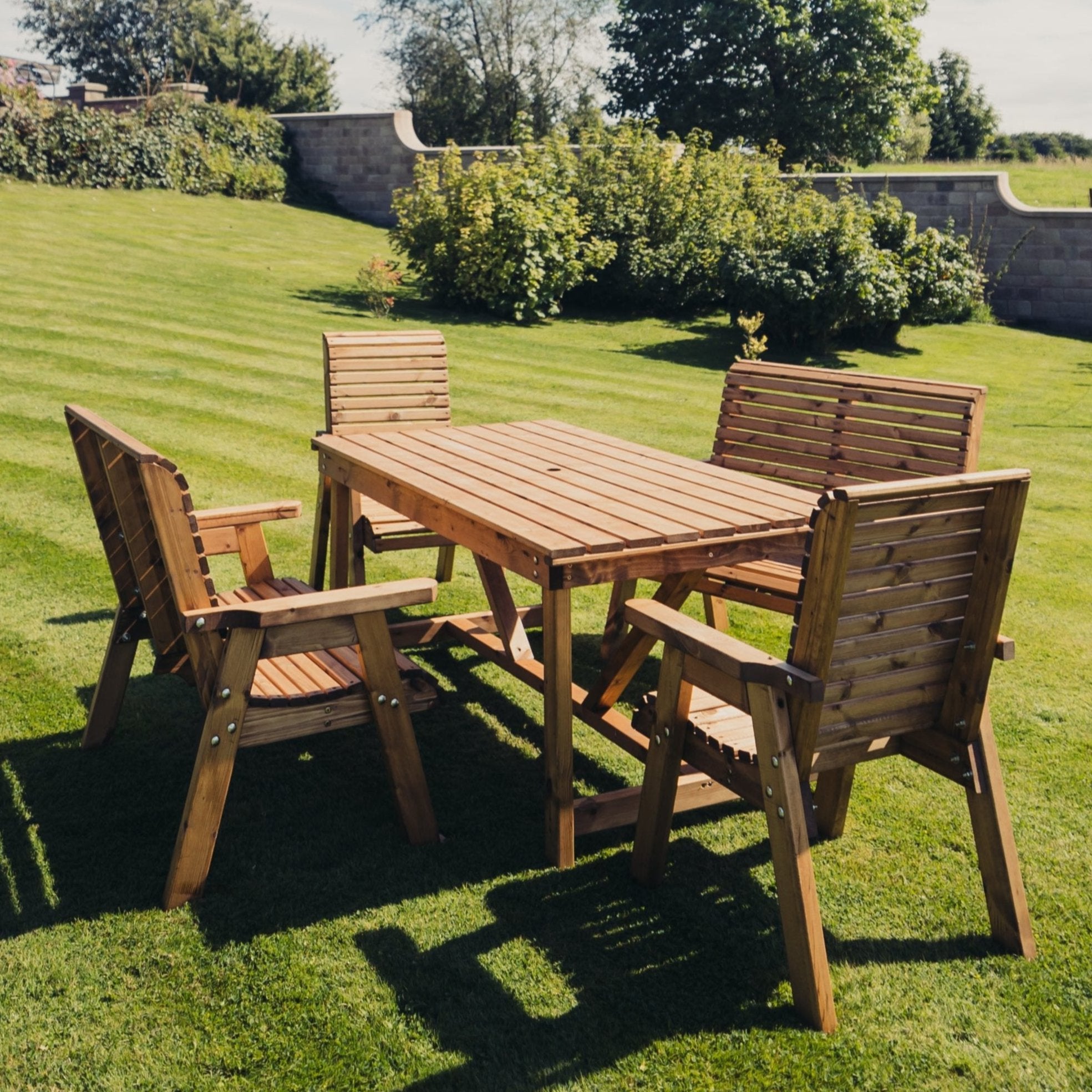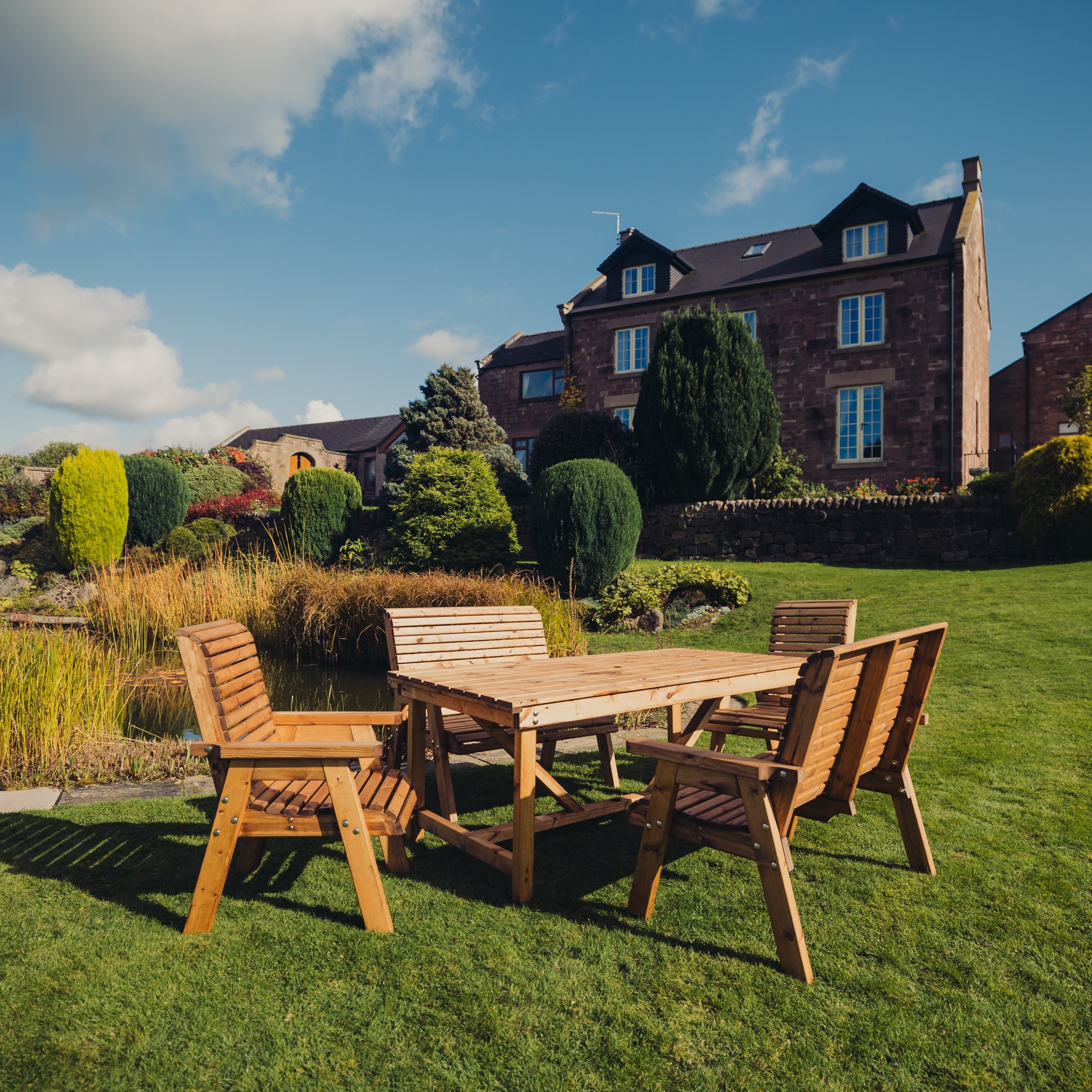 Wooden outdoor dining set handmade in North Staffordshire. Quality brown garden furniture. Get the best British made garden products from Churnet Valley Garden Furniture where we make quality wooden garden products using the finest Scandinavian Redwood which is pre-treated.