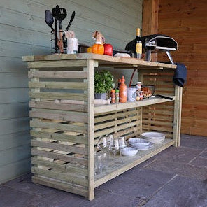 Our XL Heavy Duty BBQ & Pizza Creation Station provides a spacious, reliable surface for preparing ingredients, assembling pizzas, and keeping your outdoor cooking essentials neatly organised. Its sturdy, well-balanced design adds practical charm to any garden while creating a comfortable, easy workspace for relaxed outdoor cooking.