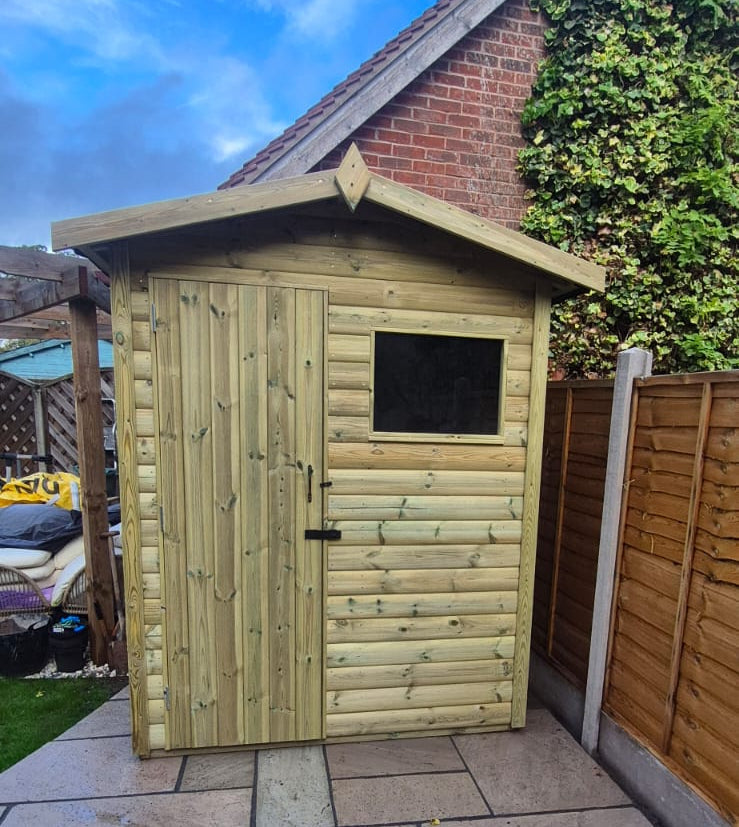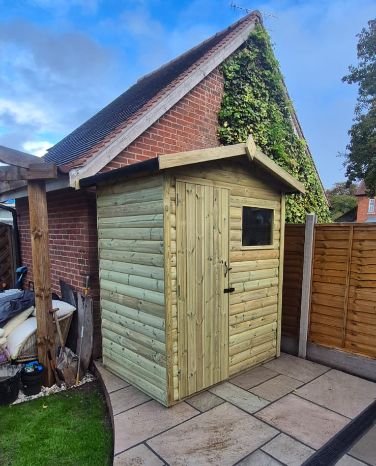 We use only high grade FSC certified ,tantalised timber in out products. The frame is constructed from 45 x 45mm timber. With 20mm thick log lap cladding sides, 22mm thick tongue and groove floor boards, 19mm thick tongue and groove clad roves finished with torch on mineral felt.