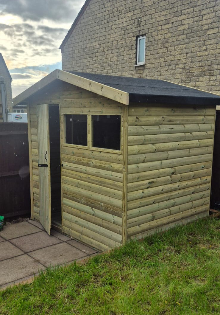 HIGH QUALITY APEX GARDEN SHED WITH DOOR TO THE LEFT, PLEASE SELECT HOW MANY WINDOWS ARE REQUIRED WHEN PLACING YOUR ORDER.