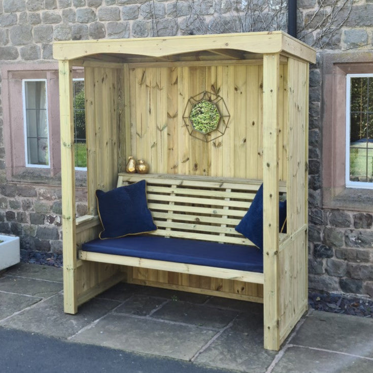 The Four Seasons Arbour is an inviting design that allows you to enjoy the great outdoors in a comfortable, shaded setting. It's beautiful, yet sturdy structure will transform any garden space and will sit 3 comfortably. The tinted polycarbonate roofing also offers protection against U.V rays.